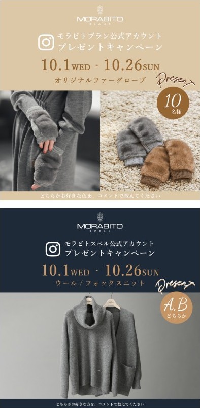 ✨<MORABITO BLANC><MORABITO SPELL>インスタグラム公式アカウントよりフォロワー&NEWフォロワーのみなさまへの日頃の感謝の気持ちを込めて「プレゼントキャンペーン」実施のお知らせ